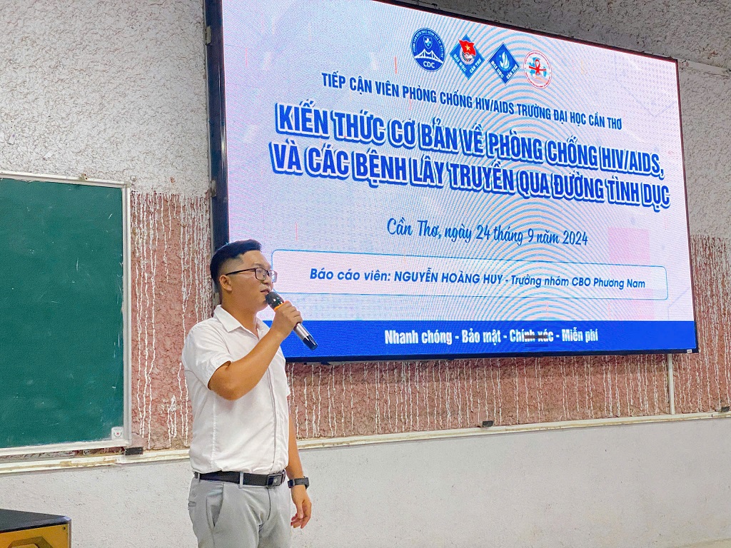 Ngày 24/9/2024 Trường Đại học Cần Thơ phối hợp với Trung tâm kiểm soát bệnh tật TP Cần Thơ tổ chức truyền thông về dự phòng trước phơi nhiễm HIV (PrEP) và dự phòng các bệnh lây truyền qua đường tình dục cho các sinh viên.
