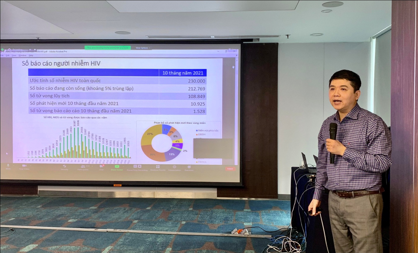 Hội thảo do PGS.TS. Phạm Đức Mạnh-Phó Cục trưởng Cục Phòng, chống HIV/AIDS chủ trì với sự tham dự của đại diện các tổ chức: WHO, USAID, PATH Healthy Market, Dự án EPIC, dự án Quỹ toàn cầu, Công ty TNHH Dịch vụ Y tế Glink Nghệ An; các Phòng thuộc Cục cùng các đầu cầu tham gia họp trực tuyến của 63 tỉnh/thành phố.