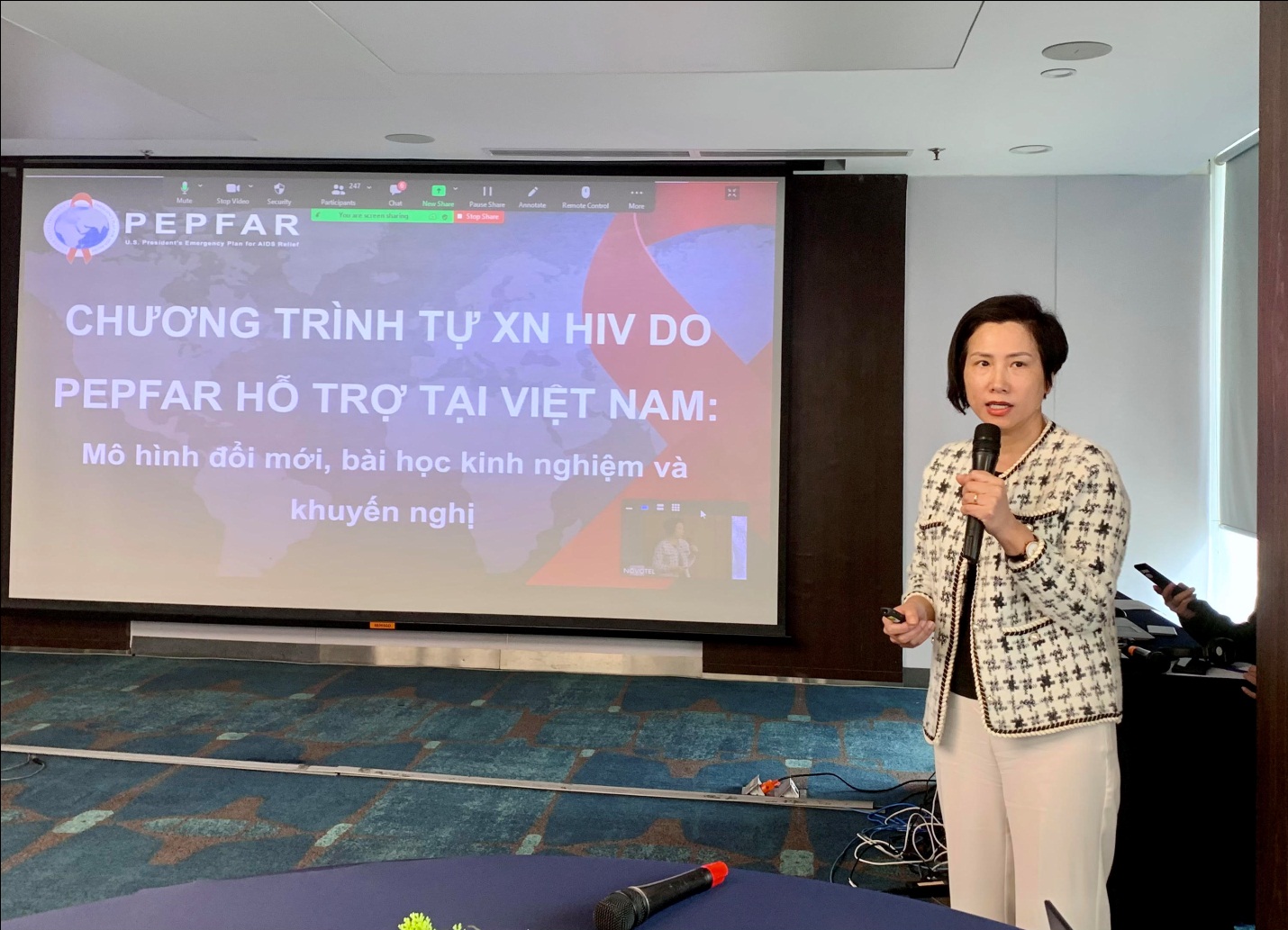 Cũng tại Hội thảo, đại biểu đã được đại diện tổ chức USAID chia sẻ về Chương trình tự xét nghiệm do PEPFAR hỗ trợ Việt Nam. Trong đó, khuyến nghị: tăng tiếp cận sinh phẩm tự xét nghiệm HIV; mở rộng sự sẵn có của sinh phẩm xét nghiệm HIV có chất lượng, giá tốt; đa dạng kênh truyền thông và chiến lược tiếp thị để tăng thực hành tự xét nghiệm HIV; tối ưu hóa với nhiều kênh phân phối khác nhau và đi kèm các xét nghiệm khác (giang mai, viêm gan B, viêm gan C…); đơn giản hóa quy trình quản lý và hỗ trợ phát triển chuỗi cung ứng để mở rộng thị trường cho các sản phẩm tự xét nghiệm HIV mới.