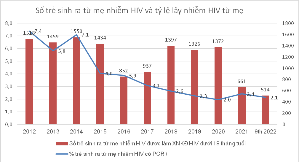 Điều trị dự phòng lây truyền HIV từ mẹ sang con bằng thuốc ARV là một trong các ưu tiên của Chiến lược quốc gia phòng, chống AIDS. Đảm bảo phụ nữ mang thai nhiễm HIV được điều trị bằng thuốc ARV sớm nhất với phác đồ tối ưu. Việt Nam đã áp dụng điều trị ARV ngay cho phụ nữ mang thai nhiễm HIV mà không phụ thuộc vào tuổi thai. Với việc mở rộng và sử dụng phác đồ ARV tối ưu, số trẻ nhiễm HIV từ mẹ đã và đang giảm mạnh, từ 1.500 trẻ năm 2012 xuống còn hơn 600 trẻ những năm gần đây; Tỉ lệ trẻ có kết quả chẩn đoán nhiễm HIV bằng CPR giảm mạnh từ 7,4% năm 2012 xuống 2,1 năm 2022.