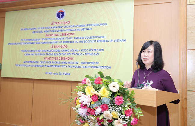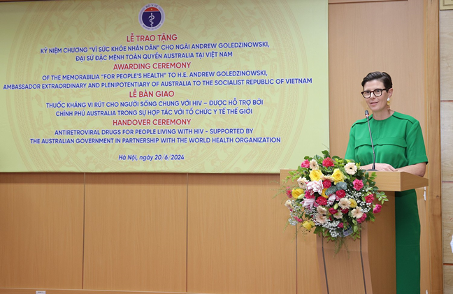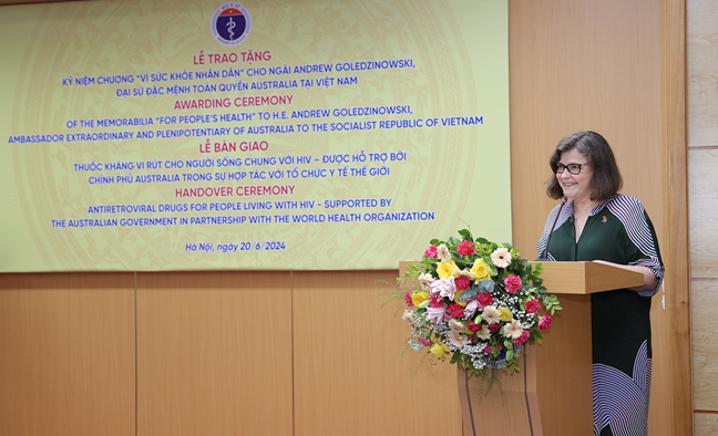 Ngày 20/6/2024, tại Hà Nội đã diễn ra Lễ bàn giao thuốc ARV cho Bộ Y tế Việt Nam từ Chính phủ Úc trong hợp tác với Tổ chức Y tế Thế giới (WHO). Đây là sự kiện hết sức quan trọng và ý nghĩa trong bối cảnh công tác mua sắm thuốc ARV điều trị người nhiễm HIV tại Việt Nam đang gặp một số khó khăn.
