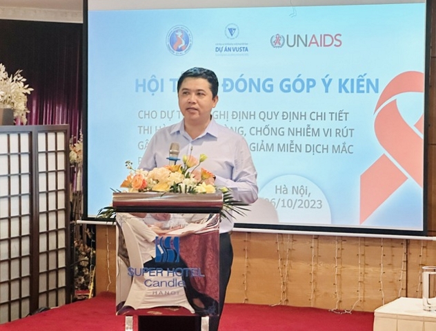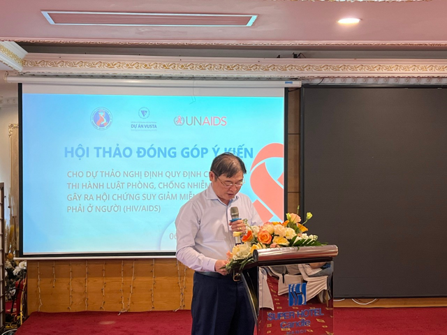 Phát biểu tại Hội thảo, Phó Cục trưởng Cục Phòng, chống HIV/AIDS Võ Hải Sơn cho biết, việc lấy ý kiến về dự thảo Nghị định Quy định chi tiết thi hành Luật Phòng, chống nhiễm virus gây ra hội chứng suy giảm miễn dịch mắc phải ở người (HIV/AIDS) là rất cần thiết. Do đó, ông mong muốn thu thập được nhiều ý kiến đóng góp từ phía các đối tác, và cộng đồng. Việc này sẽ bảo đảm khung pháp lý, giúp Nghị định đạt hiệu quả cao khi được ban hành, thực thi, giúp các cơ quan quản lý dễ tổ chức thực hiện Luật Phòng, chống HIV/AIDS, đồng thời bảo đảm quyền lợi cho người dân, tiếp cận chăm sóc, điều trị một cách công bằng.